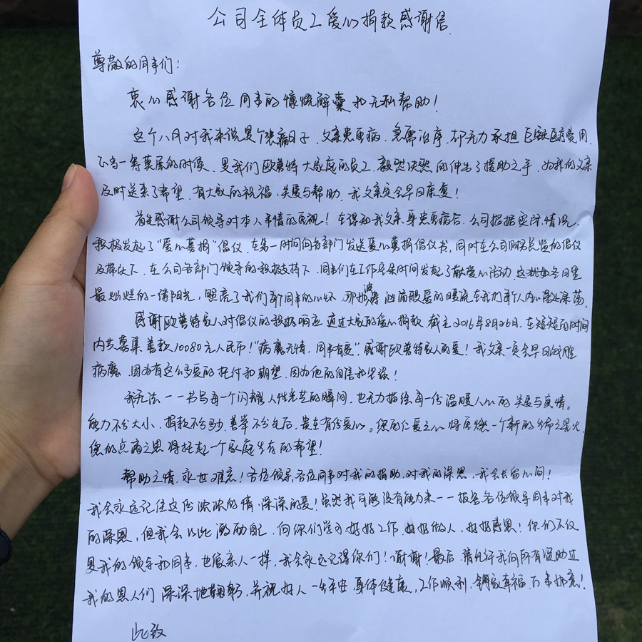 救生命刻不容緩,身為歐普特大家庭的一員,歐普特同仁及時組織愛心捐款,截止8月26日10時共籌善款27742.6元,希望這些善款能幫助她的家庭渡過難關(guān)。一筆筆愛心捐款,承載著歐普特領(lǐng)導及員工的關(guān)愛,展現(xiàn)著歐普特同仁的溫情與大愛,我們相信,這份點滴之愛匯成的暖流,將會傳遞生命的熱度,讓這個家庭看到希望的曙光,感受到歐普特大家庭的陣陣溫暖。
