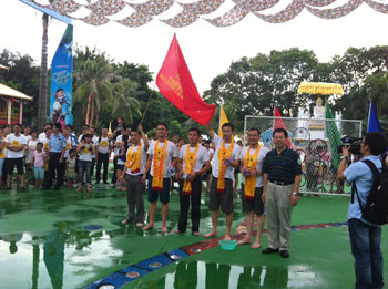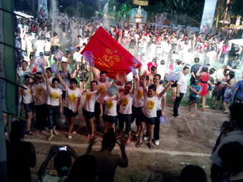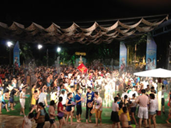 我們公司帥氣男隊熱情地參加了LED協(xié)會組織潑水節(jié)比賽并且得到冠軍。我們的美麗女員工不遑多讓也同大家一起參加了一年一度的潑水狂歡盛典。每張年輕的臉上寫意著激情、歡樂、時尚、動感。在這個熱情似火的夏日,愛shui就潑shui! 在一片水花四射中,歐普特的紅旗多么地張揚,歐普特年輕人人是那么地活潑可愛。余興節(jié)目是觀看民族村的高水平文藝晚會。一段悠揚的葫蘆絲帶出那茂密竹林深處的歌聲,水一樣的傣家姑娘身著花色筒裙,頂著水果的姑娘、挑著水罐的女孩、撐著花傘的小仆哨和舉著羅傘的和尚、還有那在清清溪水旁起舞的孔雀 。。。