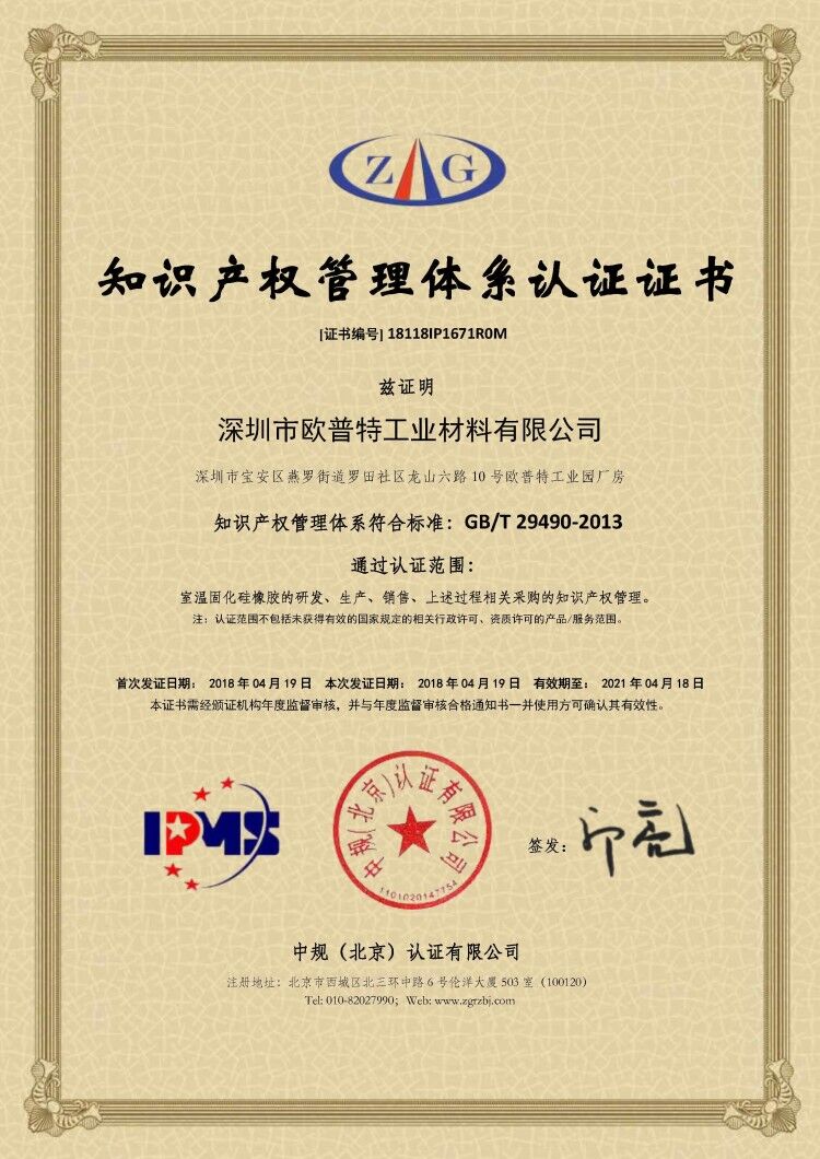 2018年4月19日,歐普特正式獲得由中規(guī)(北京)認(rèn)證有限公司頒發(fā)的"知識(shí)產(chǎn)權(quán)管理體系認(rèn)證證書”,證書的取得標(biāo)志著我司的知識(shí)產(chǎn)權(quán)工作邁上了新的臺(tái)階。2018年,歐普特走在眾多企業(yè)前端,順利完成了知識(shí)產(chǎn)權(quán)管理體系導(dǎo)入工作,使公司的知識(shí)產(chǎn)權(quán)創(chuàng)造、運(yùn)用、保護(hù)和管理水平得到了切實(shí)規(guī)范和提升;且引入的知識(shí)產(chǎn)權(quán)風(fēng)險(xiǎn)預(yù)警和防控程序,從而建立內(nèi)部研發(fā)到外部銷售的全線防控。通過(guò)知識(shí)產(chǎn)權(quán)的運(yùn)營(yíng),持續(xù)提升公司的無(wú)形資產(chǎn)價(jià)值,讓知識(shí)產(chǎn)權(quán)真正成為企業(yè)的核心競(jìng)爭(zhēng)力,使企業(yè)在激烈的競(jìng)爭(zhēng)中占領(lǐng)市場(chǎng)至高點(diǎn),在復(fù)雜的經(jīng)濟(jì)環(huán)境中始終立于不敗之地。