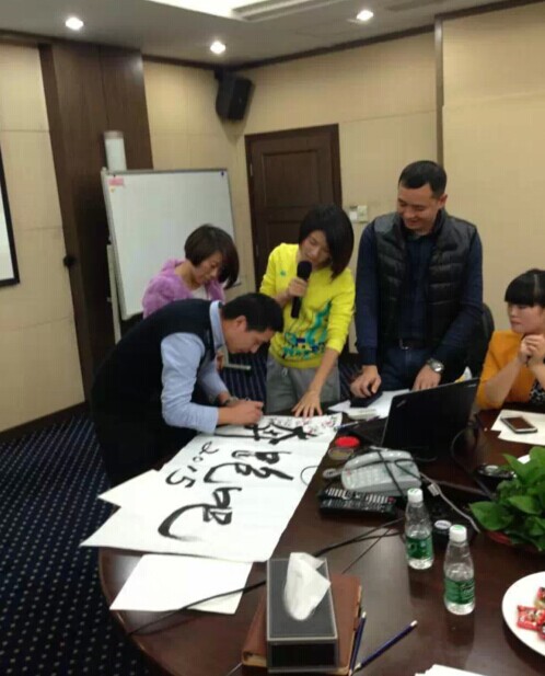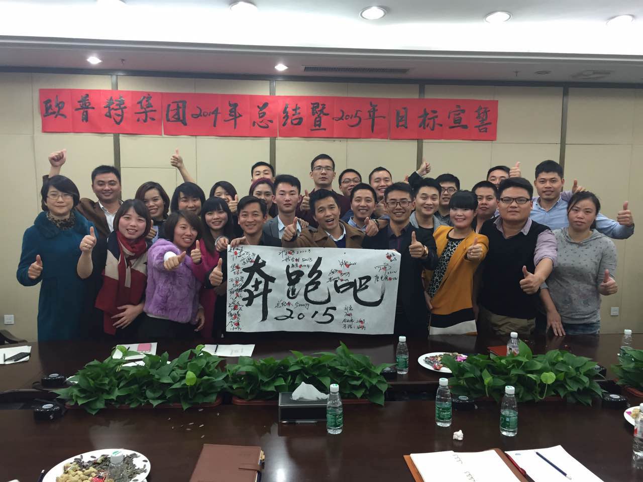 激動(dòng)人心的目標(biāo)宣誓環(huán)節(jié)終于來了,在激昂雄壯的音樂下,首先由光電一部鄭經(jīng)理簽字畫押了1200萬的個(gè)人業(yè)績承諾,然后每一個(gè)同事都簽下了自己的目標(biāo),并按上了一個(gè)個(gè)鮮紅的手指印,宣讀自己豪邁的承諾-----有承諾未完成目標(biāo)裸奔的,也有承諾完成任務(wù)后請大家寶利來旋轉(zhuǎn)餐廳自助餐的。2015年大家都在努力逼自己改變,去實(shí)現(xiàn)自己更遠(yuǎn)大的夢想。幾十個(gè)兄弟姐妹的夢想就像一條條娟娟溪流匯成大海,凝聚成歐普特集團(tuán)2015年?duì)I銷戰(zhàn)略,由蘇立輝揮毫潑墨取名“奔跑吧2015”。